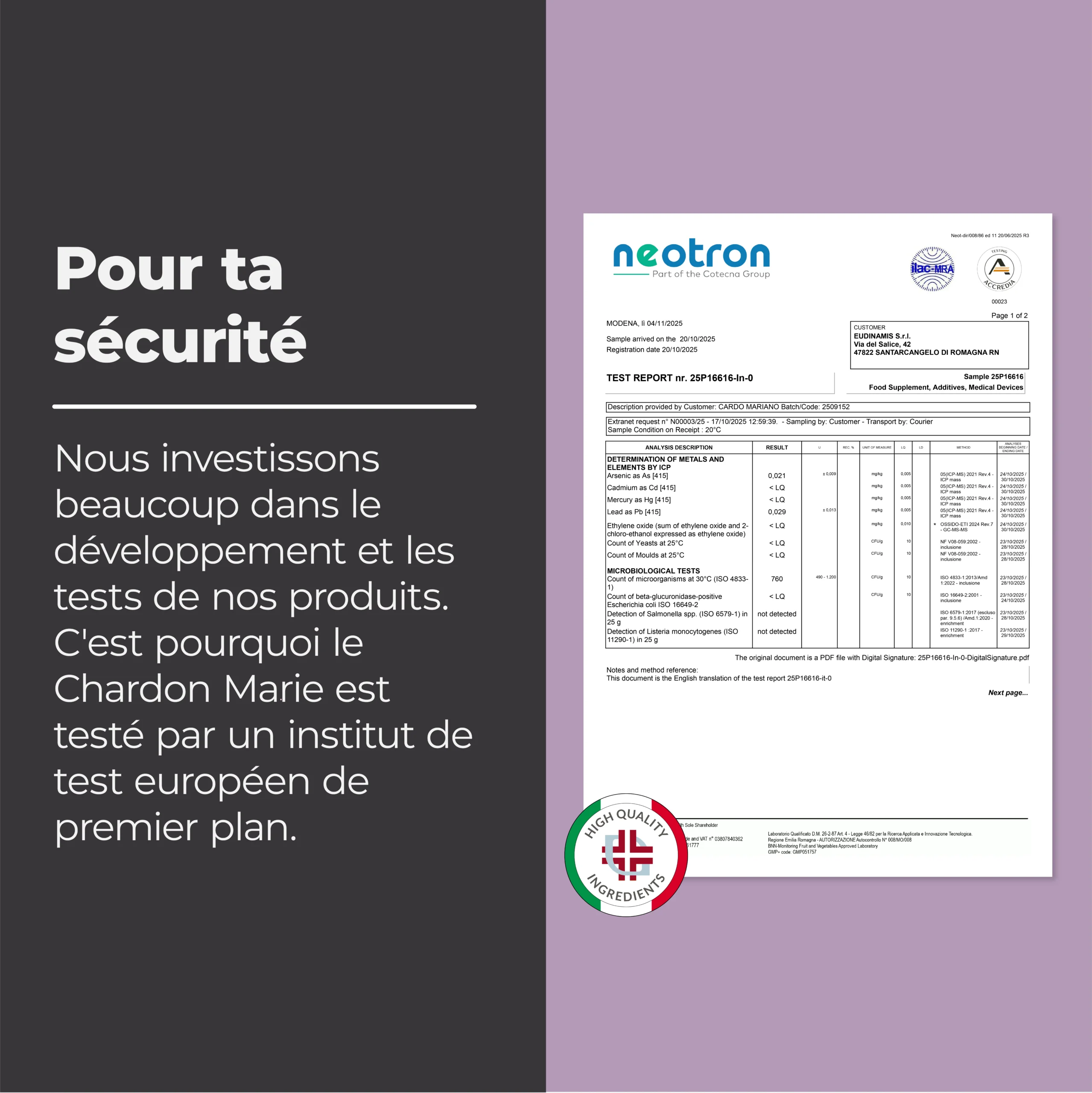 Supplément produit par la méthode HPLC, un procédé extractif qui respecte la nature.