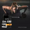 L’EAA est un complément d’acides aminés essentiels, des acides aminés que le corps humain ne peut pas synthétiser seul et qui doivent être consommés par l’alimentation. La formulation particulière des différents acides aminés essentiels garantit un niveau optimal d’absorption cellulaire et de biodisponibilité. Les acides aminés stimulent la synthèse des protéines, modèrent les dommages musculaires et aident à limiter les temps de récupération.