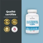 Glucosamine comprimés est un complément alimentaire contenant du sulfate de glucosamine, du sulfate de chondroïtine, du MSM et de la vitamine C.