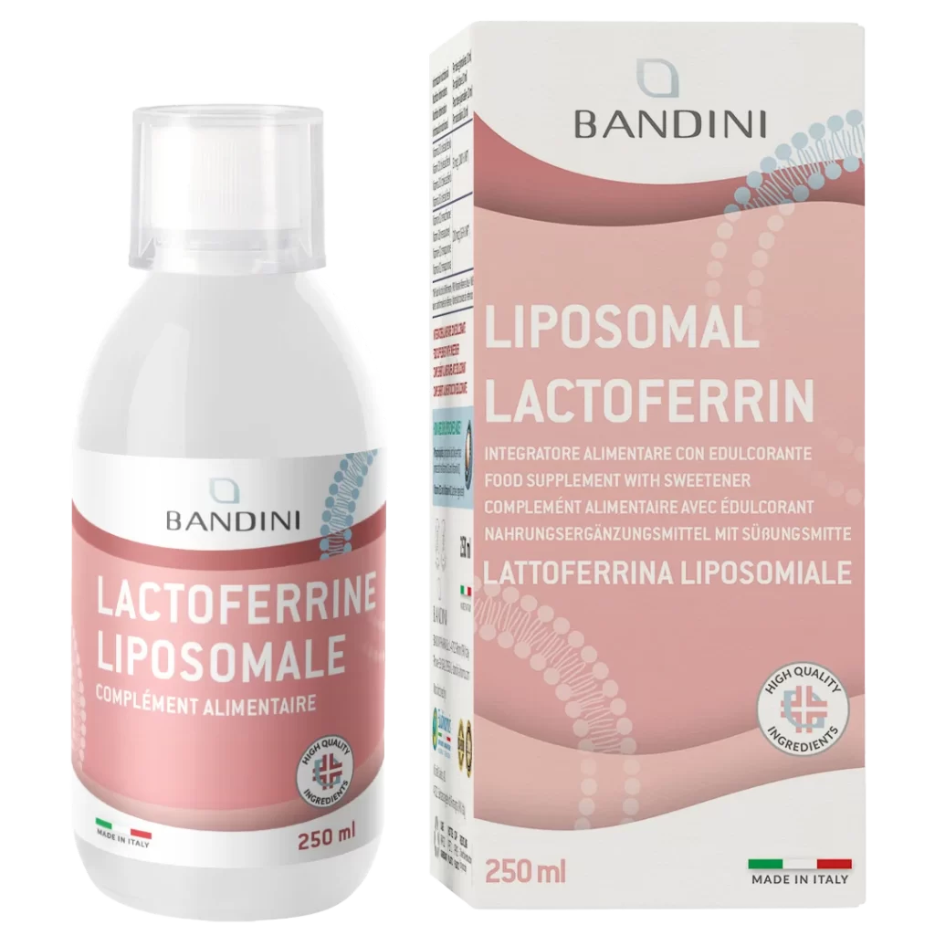 La lactoferrine de Bandini Pharma est produite à l’aide de la technologie liposomale dans laquelle de petites particules sphériques (les liposomes) encapsulent l’ingrédient actif dans une coquille de phospholipide, améliorant ainsi son absorption dans l’intestin.