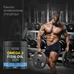 Omega 3 est un complément alimentaire fournissant 360 mg d’acide eicosapentaénoïque (EPA) et 240 mg d’acide docosahexaénoïque (DHA), qui contribuent à une fonction cardiaque normale. L’effet bénéfique est obtenu avec une consommation quotidienne de 250 mg d’EPA et de DHA. Il fournit également 6,8 mg de vitamine E par dose journalière, qui contribue à la protection des cellules contre le stress oxydatif.