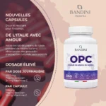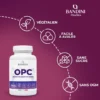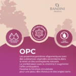 OPC est un complément alimentaire à base d’extrait de pépins de raisin. L’OPC est riche en antioxydants, en flavonoïdes — des composés végétaux secondaires —, en catéchines — des antioxydants —, et en resvératrol, un polyphénol. Les OPC contribuent à protéger contre les dommages causés par les radicaux libres et sont utiles pour soutenir et protéger les vaisseaux sanguins ainsi que la microcirculation.