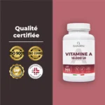 Vitamine A en comprimé est un complément alimentaire contenant de la vitamine A sous forme d’acétate de rétinyle.