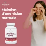 Vitamine A en comprimé est un complément alimentaire contenant de la vitamine A sous forme d’acétate de rétinyle.
