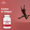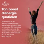 La vitamine B12 contribue à un métabolisme énergétique normal, au fonctionnement normal du système nerveux et à une fonction psychologique normale. Elle contribue à la formation normale des globules rouges, au fonctionnement normal du système immunitaire, à la réduction de la fatigue et intervient dans le processus de division cellulaire.